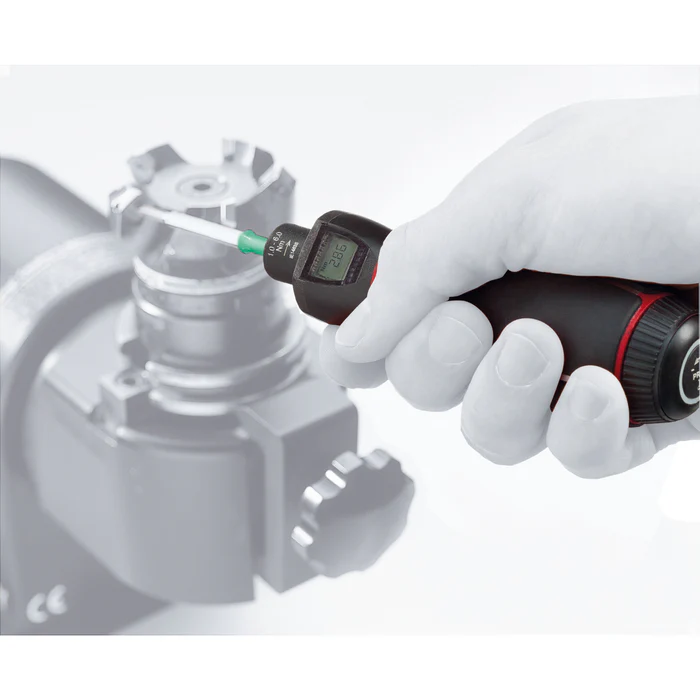 Su diseño inteligente e innovador permite configurar fácilmente el valor de torque (Nm o lb-in) mediante el botón digital integrado en el mango, con un amplio rango de ajuste. El display digital de gran tamaño muestra el valor seleccionado con lectura clara y exacta, ideal para entornos de trabajo donde la precisión es crítica.